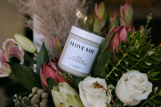 I Love You Pack - Local Flowers Bunch + Amani Soy Candle + Card